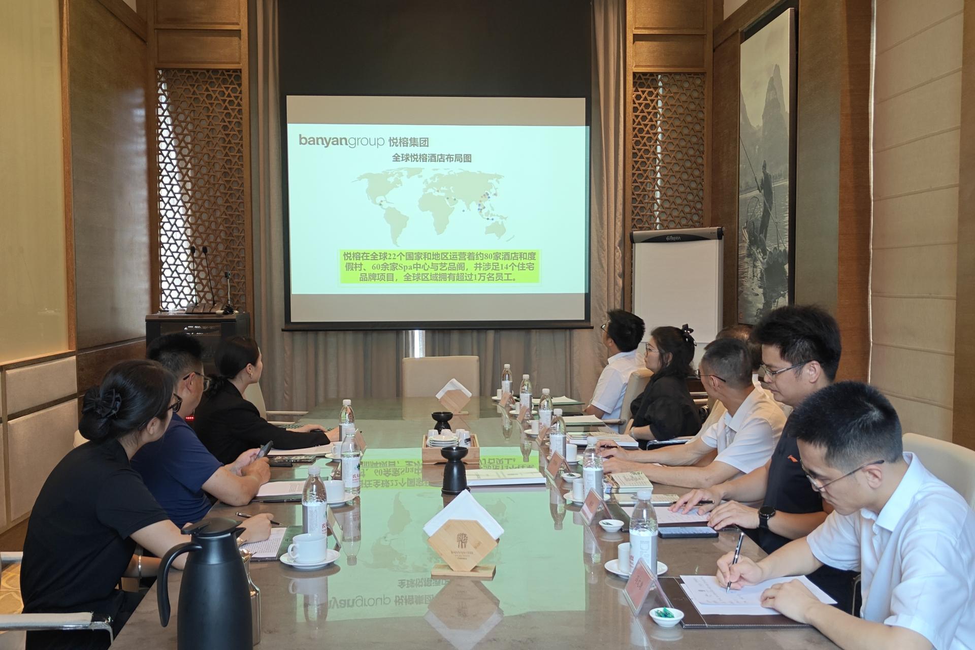 参观结束后,校企双方在酒店会议室举行交流会。阳朔悦榕庄副总经理刘剑峰对到场领导表示欢迎,表示将进一步支持和加强校企合作力度。黄丽芳经理重点汇报了桂林信科与悦榕集团合作成果、第一届人才订制班合作成效,以及第二届订制班工作进度,对学校培养出的酒店管理专业人才在实习和工作中的表现给予了高度认可与肯定。刘跃峰副校长对阳朔悦榕庄酒店给予pp电子学生的悉心培养表示感谢,并就实践基地培养计划、实习生培训手册、企业导师授课内容、校企教学资源整合等方面提出建议,希望校企双方通力合作,持续重点关注学生职业成长与发展,以提高双方合作深度和黏度,真正实现企校生三方共赢。