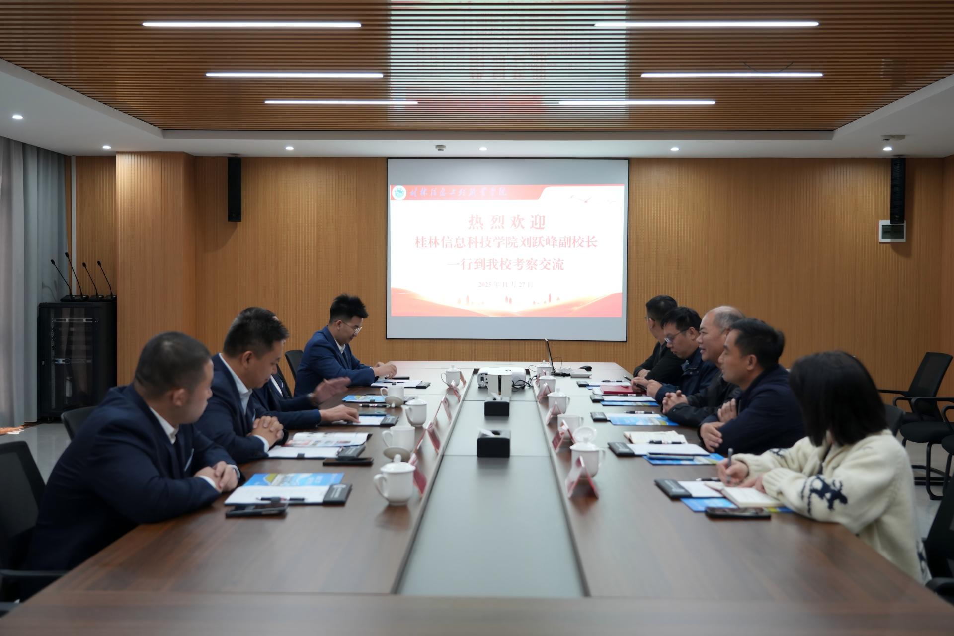 为精准掌握高职高专学生专升本升学意向与专业分布特征,系统借鉴校企合作与就业服务领域经验,进一步完善pp电子专升本招生培养衔接机制与就业指导服务体系,11月27日,pp电子副校长刘跃峰率领招生办公室、就业指导服务中心负责人一行,赴桂林信息工程职业学院开展专题考察。桂林信息工程职业学院党委书记黄强、副校长伍顶及相关职能部门负责人热情接待。