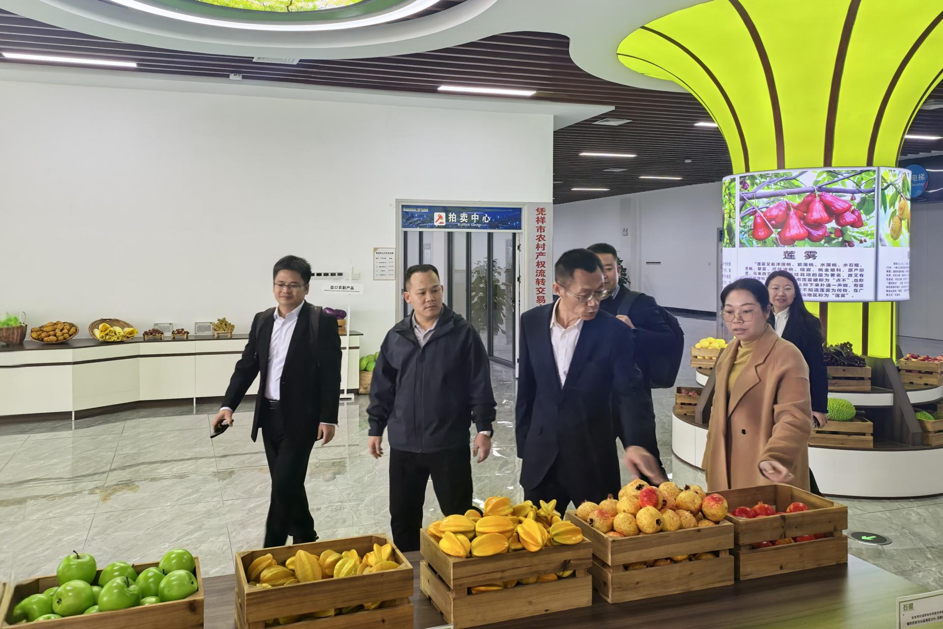 凭祥市国际贸易开发集团党务专职副书记黎小凤带领调研团参观中国-东盟(崇左)水果交易中心