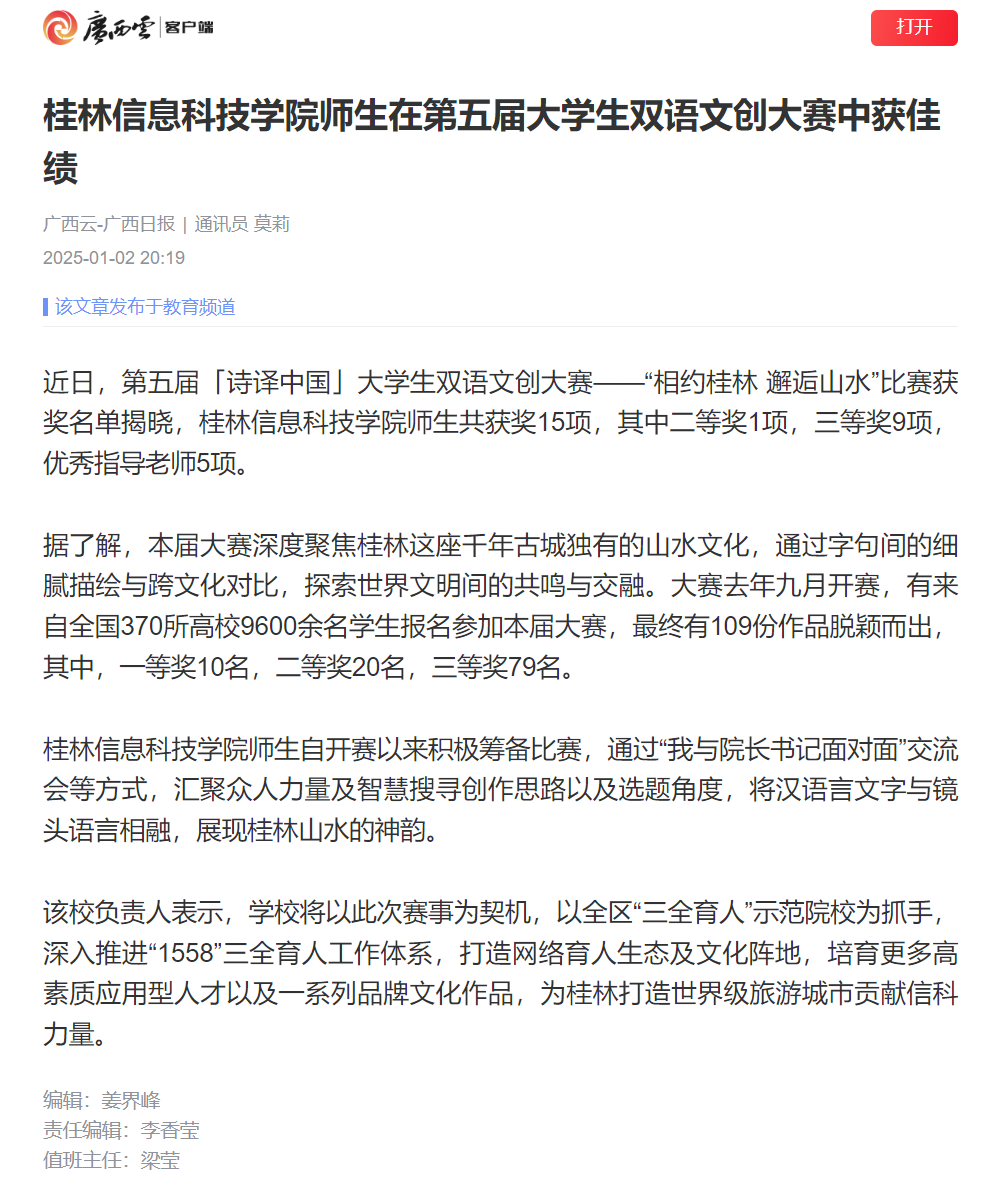 广西云-广西日报链接:pp电子模拟器网站师生在第五届大学生双语文创大赛中获佳绩