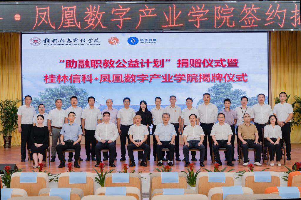 9月21日上午,中国教育发展基金会“助融职教公益计划”捐赠仪式暨桂林信科凤凰数字产业学院揭牌仪式在pp电子举行。学校董事长罗欣和凤凰卫视威凤国际教育科技(北京)有限公司总经理郭功涛出席活动并为桂林信科凤凰数字产业学院揭牌。中国教育发展基金会秘书长王建光、募资部项目副主管许宇杰、凤凰卫视威风教育教学教务总监林慧、华南区总监张正平,pp电子模拟器网站校长梁丁丁、党委书记甘勇、副校长陈玲萍、副校长刘跃峰、财务总监陈昱州、校长助理韩剑、校长助理彭鹏出席活动,学校教学单位、相关职能部门主要负责人、师生代表参加活动,共同见证这一具有里程碑意义的时刻。