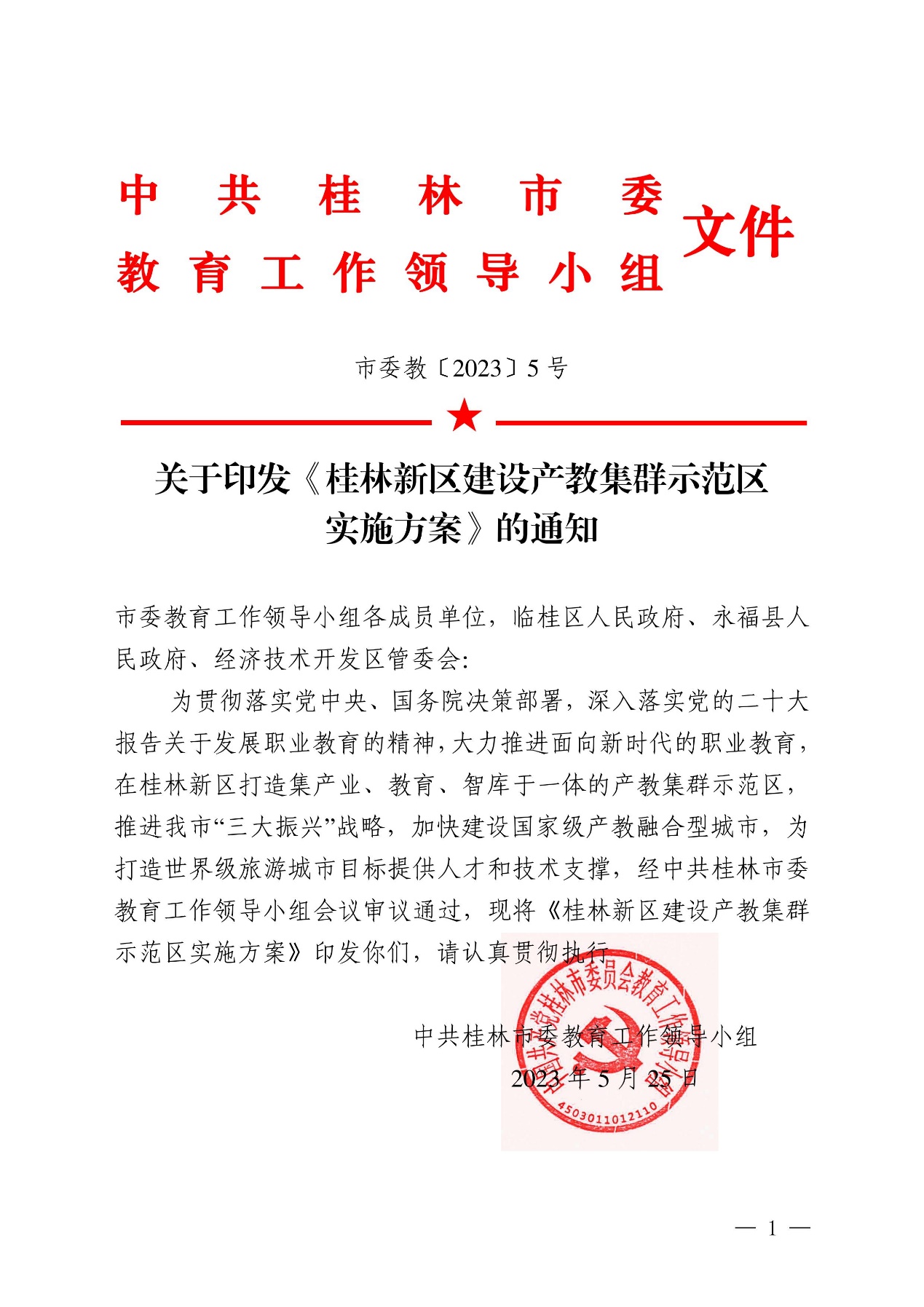 市委教关于印发《桂林新区建设产教集群示范区实施方案》的通知
