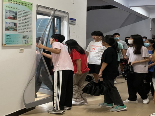 大学生心理健康志愿者协会的成员作为向导引导学院全体新同学参观心理中心不同的教室,并且还详细了解了各个教室的对应功能以及咨询中心的日常工作流程。