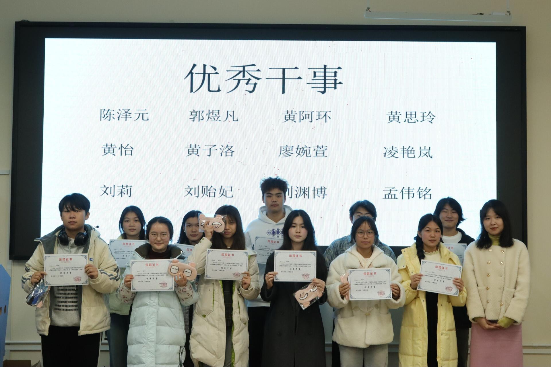 大会伊始,心协负责人对本学期的各项工作进行了全面回顾。在过去的一学期中,心协通过举办心理文化设计大赛、心理健康知识竞赛、心理委员素质拓展等多个活动,为全校师生提供了丰富多样的心理健康支持服务,在校园内营造了关注心理健康的良好氛围。表彰环节上,主持人宣读了表彰名单,社会实践部和团辅拓展部荣获“优秀部门”,曹杨等12人被评为“优秀理事”,张璇等21人被评为“优秀干事”,虞诗岚等78人获“全勤之星”,韩可欣等63人获“活动之星”。