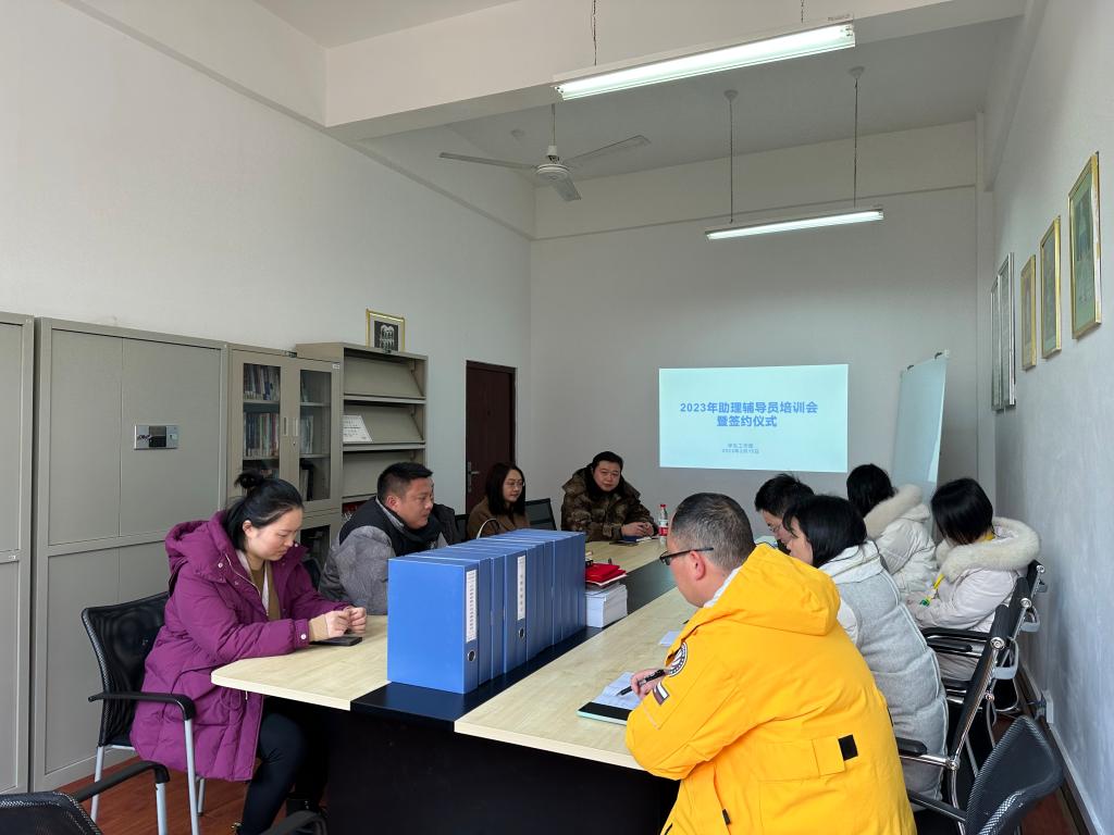为进一步加强pp电子辅导员队伍建设,保证学生教育管理工作顺利有序开展,2月16日,学生工作部在31213开展2023年助理辅导员培训会暨签约仪式。学生工作部部长周璇、副部长梁自珍、各学院党总支书记以及遴选出的8名助理辅导员参加会议,会议由学生工作部部长周璇主持。