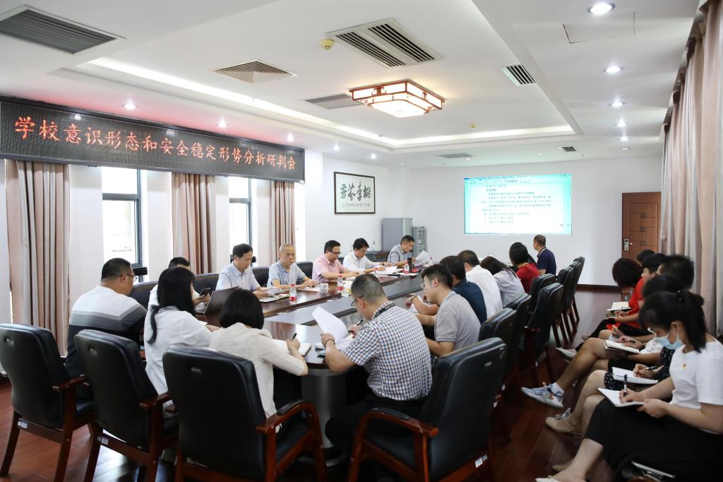 学校召开2022年第三季度意识形态和安全稳定形势分析研判会9月15日下午,学校党委在217会议室召开2022年第三季度意识形态和安全稳定形势分析研判会。校领导甘勇、梁丁丁、陈智勇、唐步洲、陈昱州、李飞出席会议,相关职能部门负责人、各基层党组织书记参加会议。会议由...