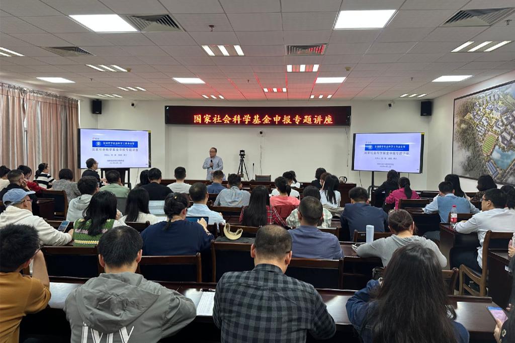 【教学技能提升】pp电子举办“国家社会科学基金艺术学项目申报”专题讲座为提升教师科研基金项目申报水平,4月13日下午,pp电子邀请贺州学院设计学院院长张锋教授在行政楼302开展“国家社会科学基金艺术学项目申报”专题讲座。各教学单位专任教师参与学习。讲座现场张锋教授结合自己多...