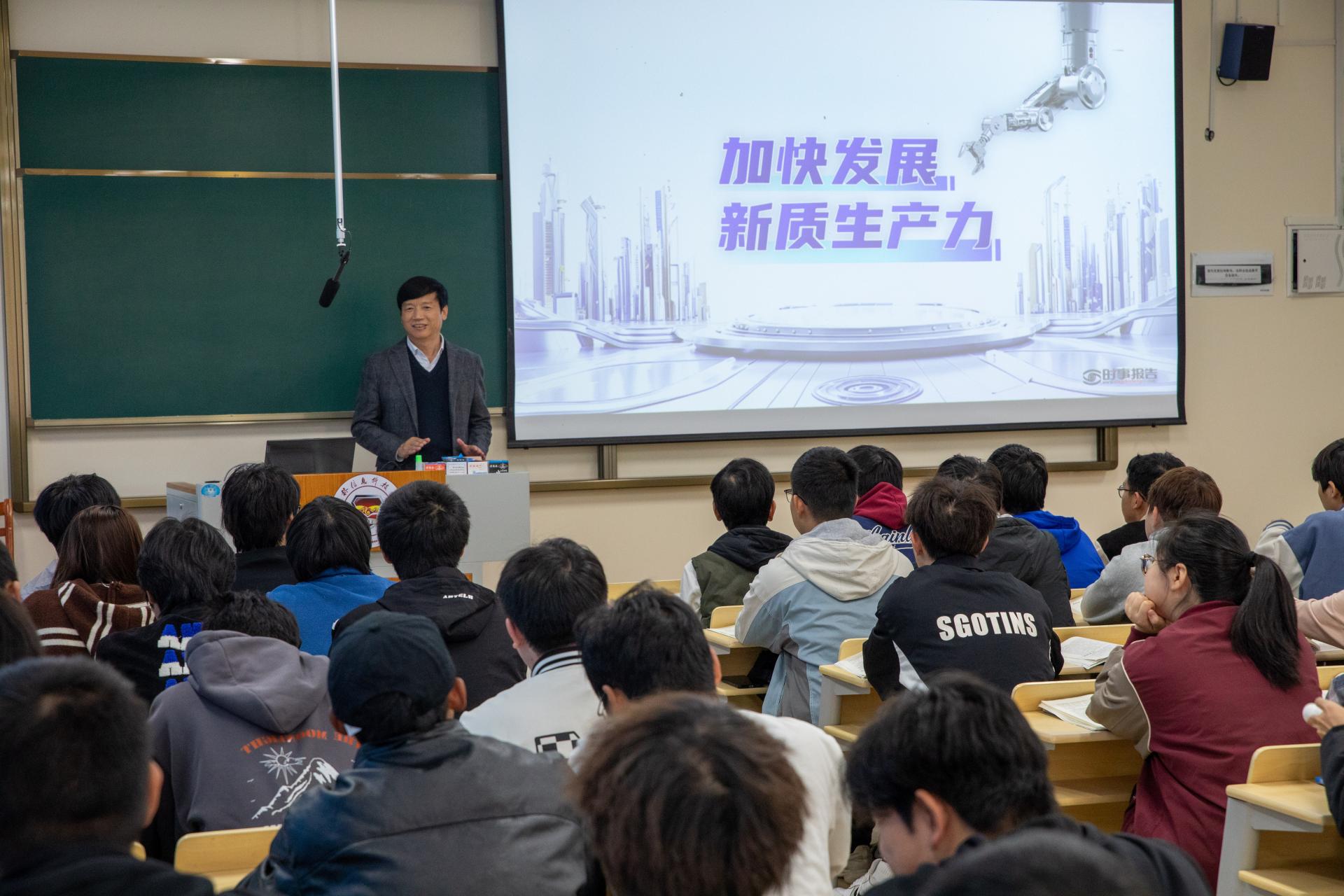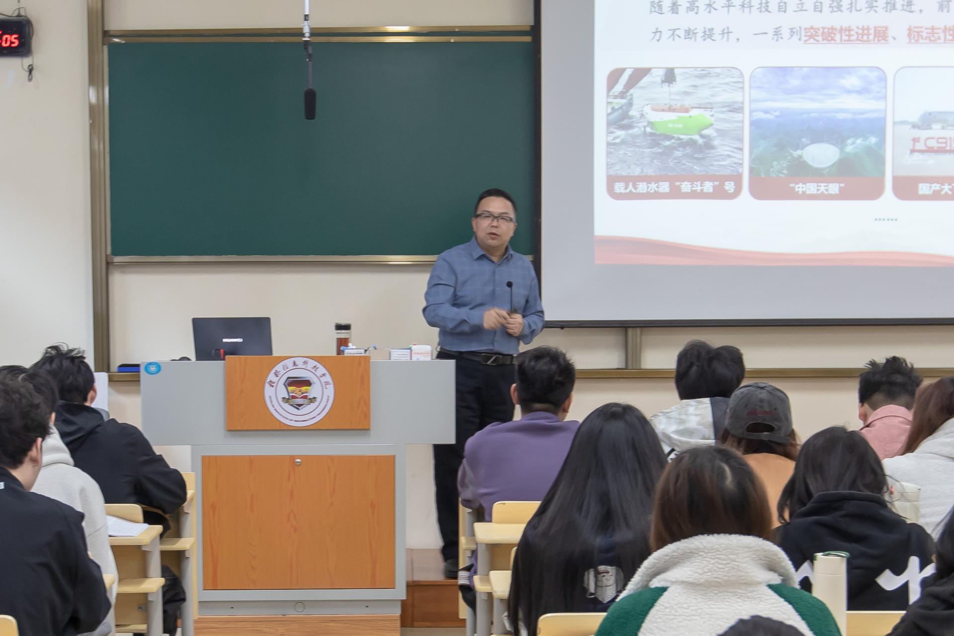 校长解庆林为学生讲授“形势与政策”课为了进一步贯彻落实中共中央办公厅、国务院办公厅印发的《关于深化新时代学校思想政治理论课改革创新的若干意见》文件和习近平总书记对学校思政课建设作出的重要指示精神,持续用习近平新时代中国特色社会主义思...