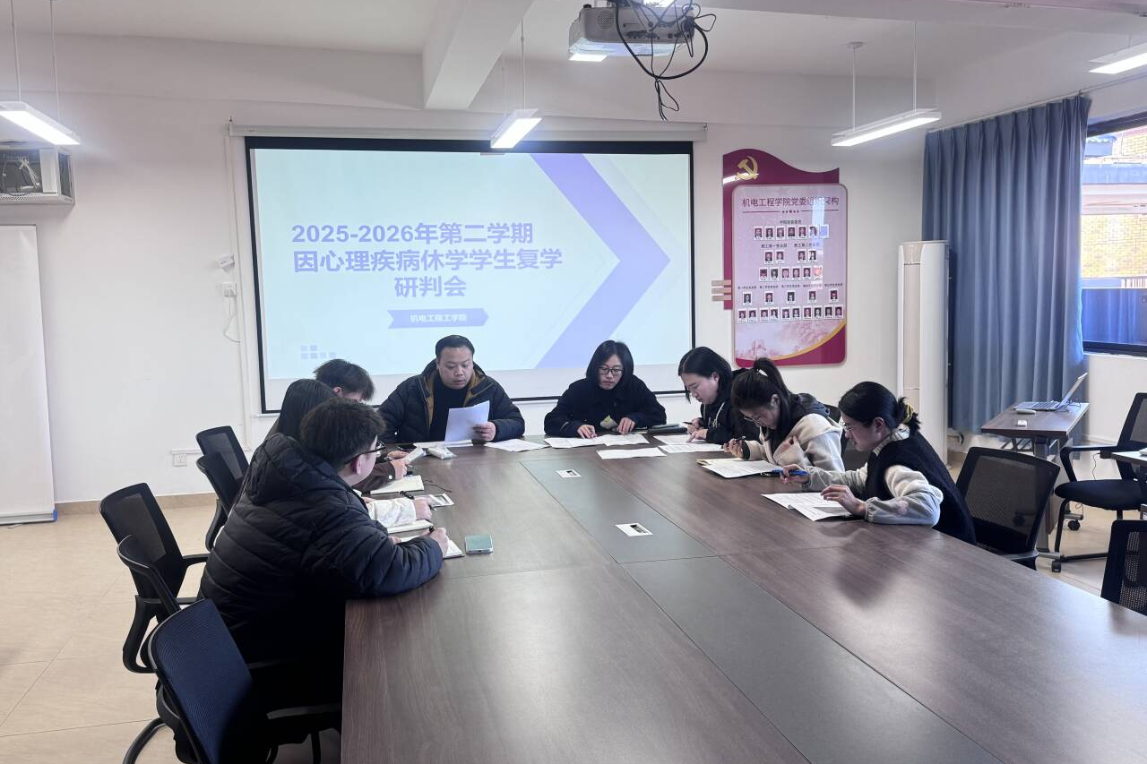 机电工程学院召开2025-2026学年第二学期休学学生复学联席研判会为进一步规范休学学生复学工作流程,扎实做好因心理、精神疾病休学学生的复学评估与后续帮扶工作。3月5日,机电工程学院在学院会议室召开2025-2026学年第二学期休学学生复学联席研判会。学院党委书记、党委副书...