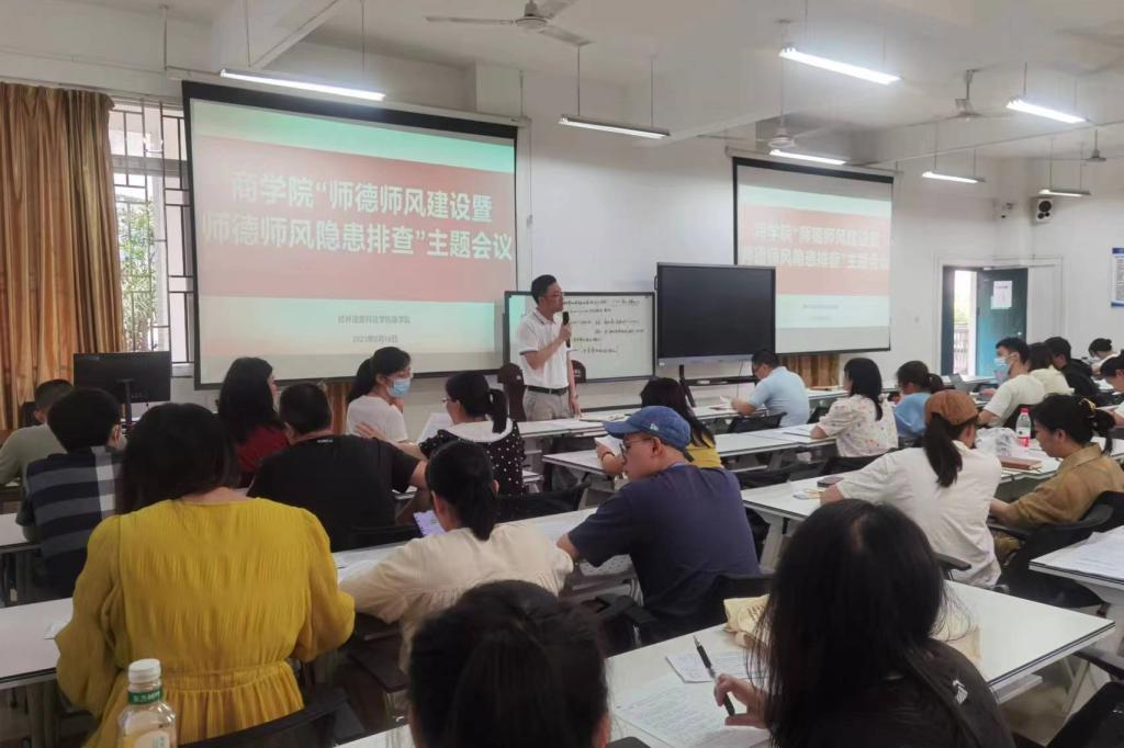 商学院召开师德师风建设暨风险隐患排查专题会议为了进一步加强师德师风建设,落实学校《关于开展全体教职工师德师风风险隐患排查的通知》工作要求,6月16日下午,商学院在11210室召开师德师风建设暨风险隐患排查专题会议。学院副院长罗志明、党委书记许奇及全...