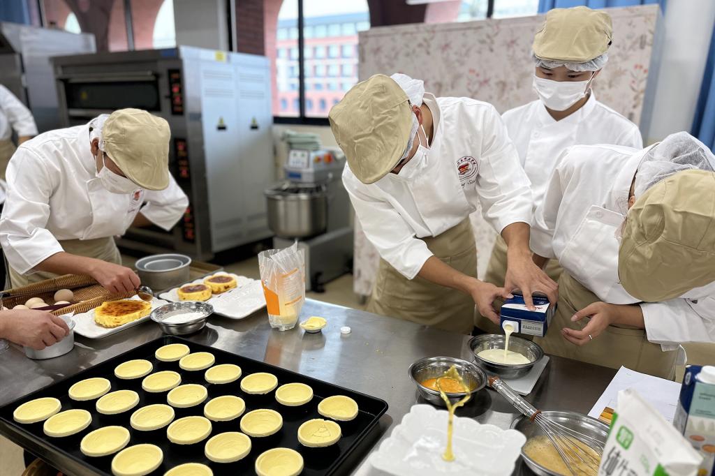 外贸与外语学院《食品加工应用I》实操课正式开课12月10日,外贸与外语学院F113烘焙实验室正式启用,2022级酒店管理专业《食品加工应用I》实操课同时开课,酒店管理教研室主任黄艳和教研室全体教师参加本次实操课。《食品加工应用I》实操课现场—烘焙实验室《...