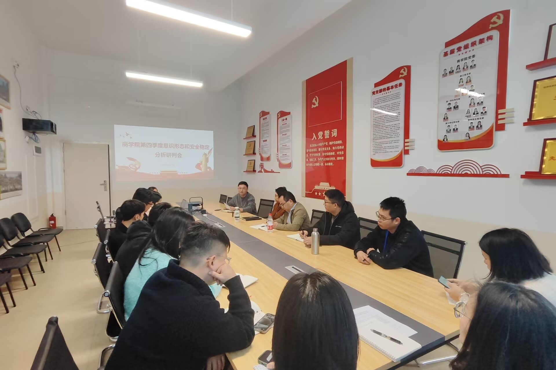 商学院召开2024年第四季度意识形态和安全稳定分析研判会11月29日,商学院党委在博文楼F504召开2024年第四季度意识形态和安全稳定分析研判会。学院党政班子成员、各教研室主任、各党支部书记、组织员参加会议。会议由党委书记许奇主持。会上,许奇传达了全区教育系统安...