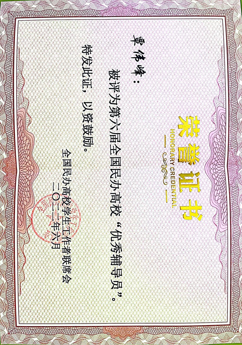 近日,由全国民办高校学生工作者联席会主办的第六届全国民办高校辅导员颁奖典礼以网络直播的形式隆重举行,pp电子信息工程学院辅导员覃伟峰老师荣获第六届全国民办高校“优秀辅导员”称号。