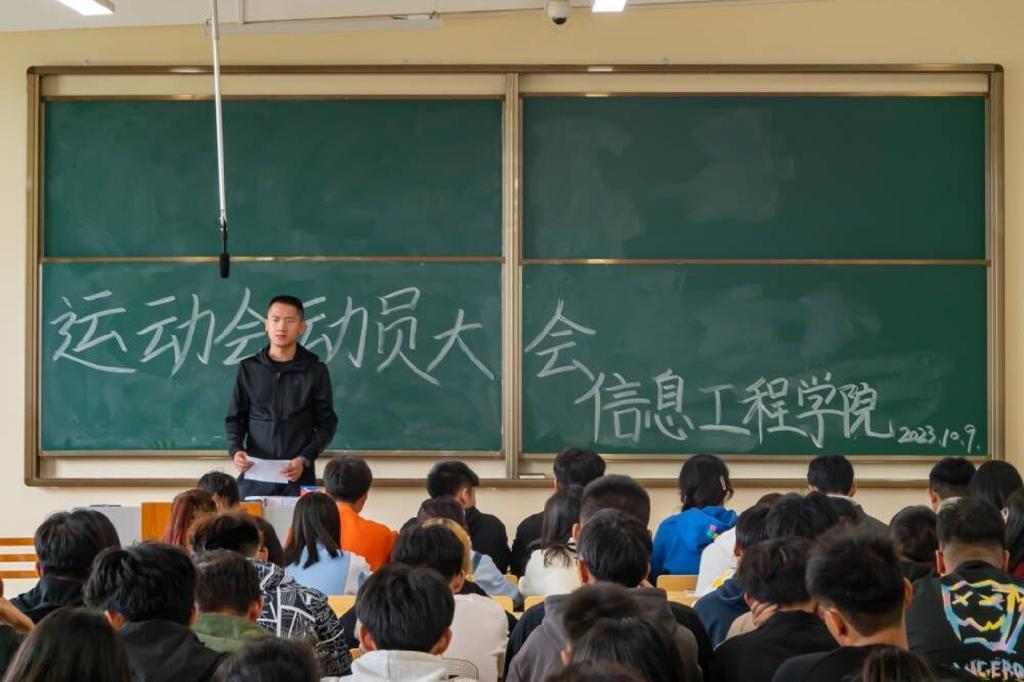 10月9日,信息工程学院于C508 教室召开校运会动员大会,本次会议由我院分团委书记覃伟峰老师主持,学院两委以及新生助班全体成员参加了会议。