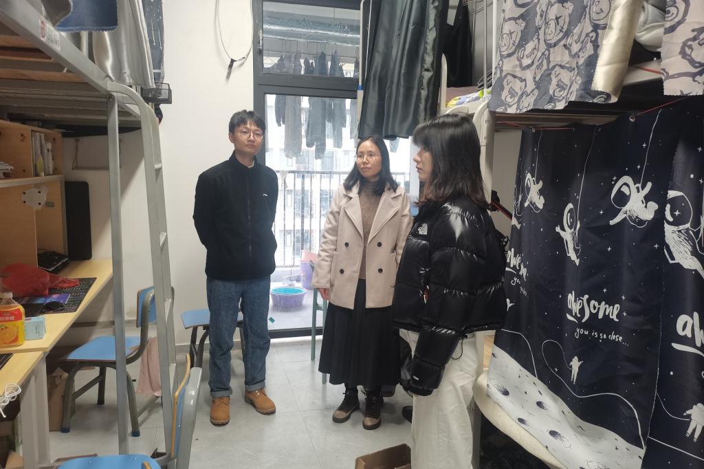 为加强对学生的关爱和管理,同时提高学生的安全意识和自我保护能力,1月12日,信息工程学院组织学院辅导员下宿舍检查。