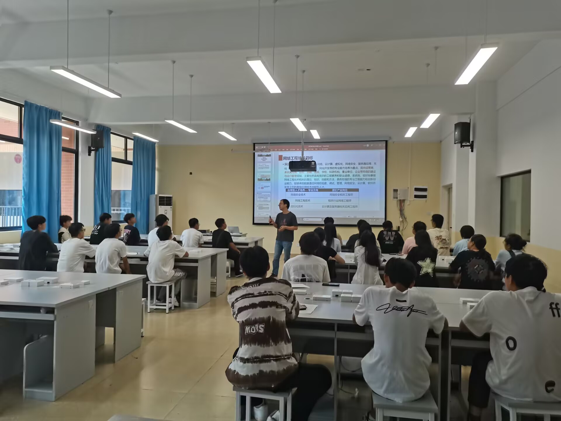 介绍会伊始,教研室主任对新生的到来表示热烈欢迎,并从学校概况、专业学习目标、人才培养目标、校企合作、竞赛成绩、就业方向、师资力量等多个方面向新生进行了详细介绍。介绍环节尾声,教研室主任鼓励新生在完成学习任务之余,积极参加各类实践活动和学科竞赛,塑造全方位、多领域的综合技能与能力,为个人简历增添辉煌的一笔。最后,新生与专任教师就通信、计算机基地、专业技能竞赛参与及未来就业方向等多个议题进行探讨。