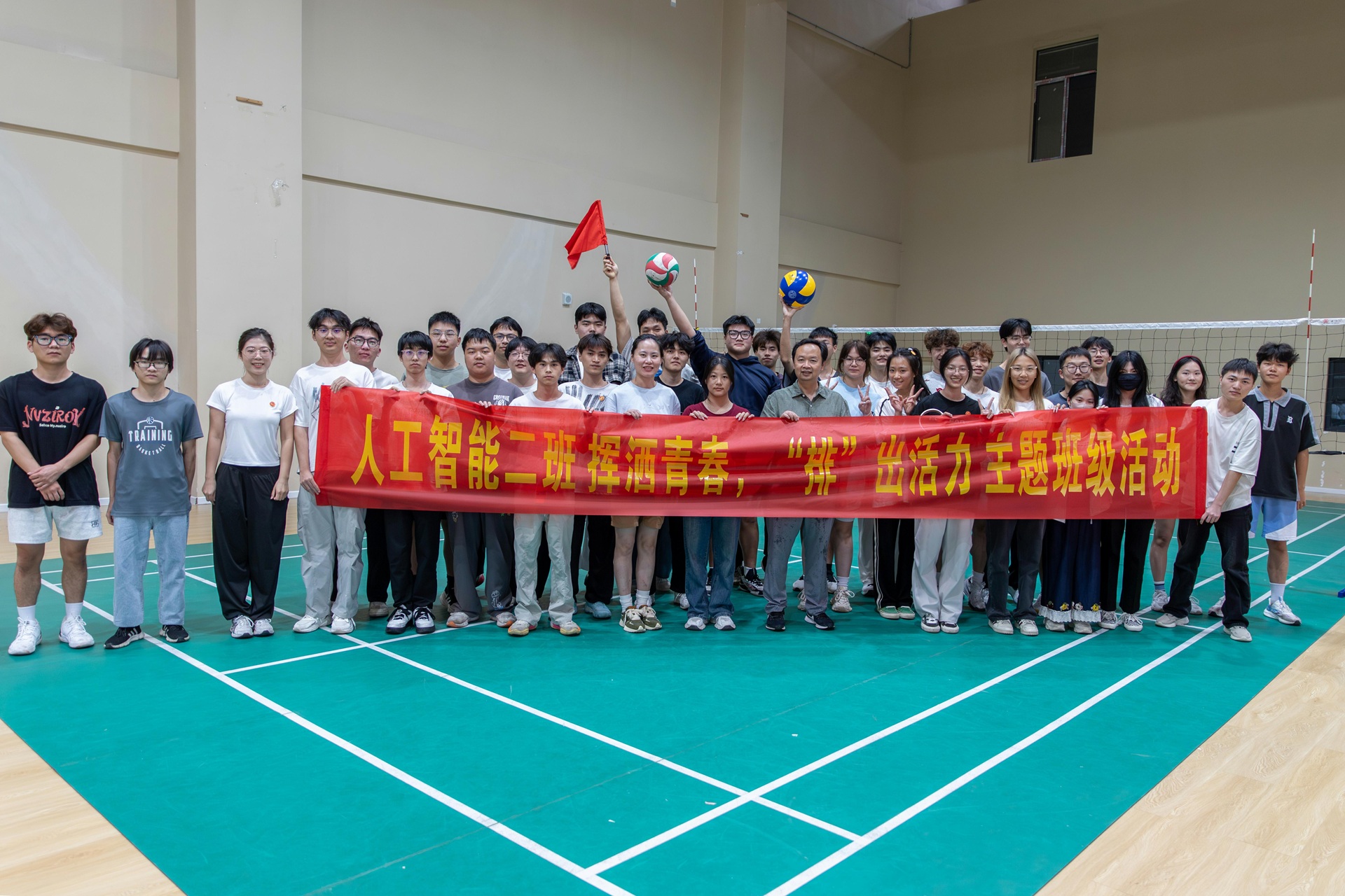 为了丰富学生的课余生活,增强班级的凝聚力,5月10日下午,2024级人工智能二班在学校体育馆排球场举办了一场别开生面的体育类班会活动,主题为“挥洒青春,‘排’出活力”。学业导师、学校董事长罗欣全程参与其中,与同学们一同挥洒汗水,以实际行动展现了师生同心的深厚情谊。