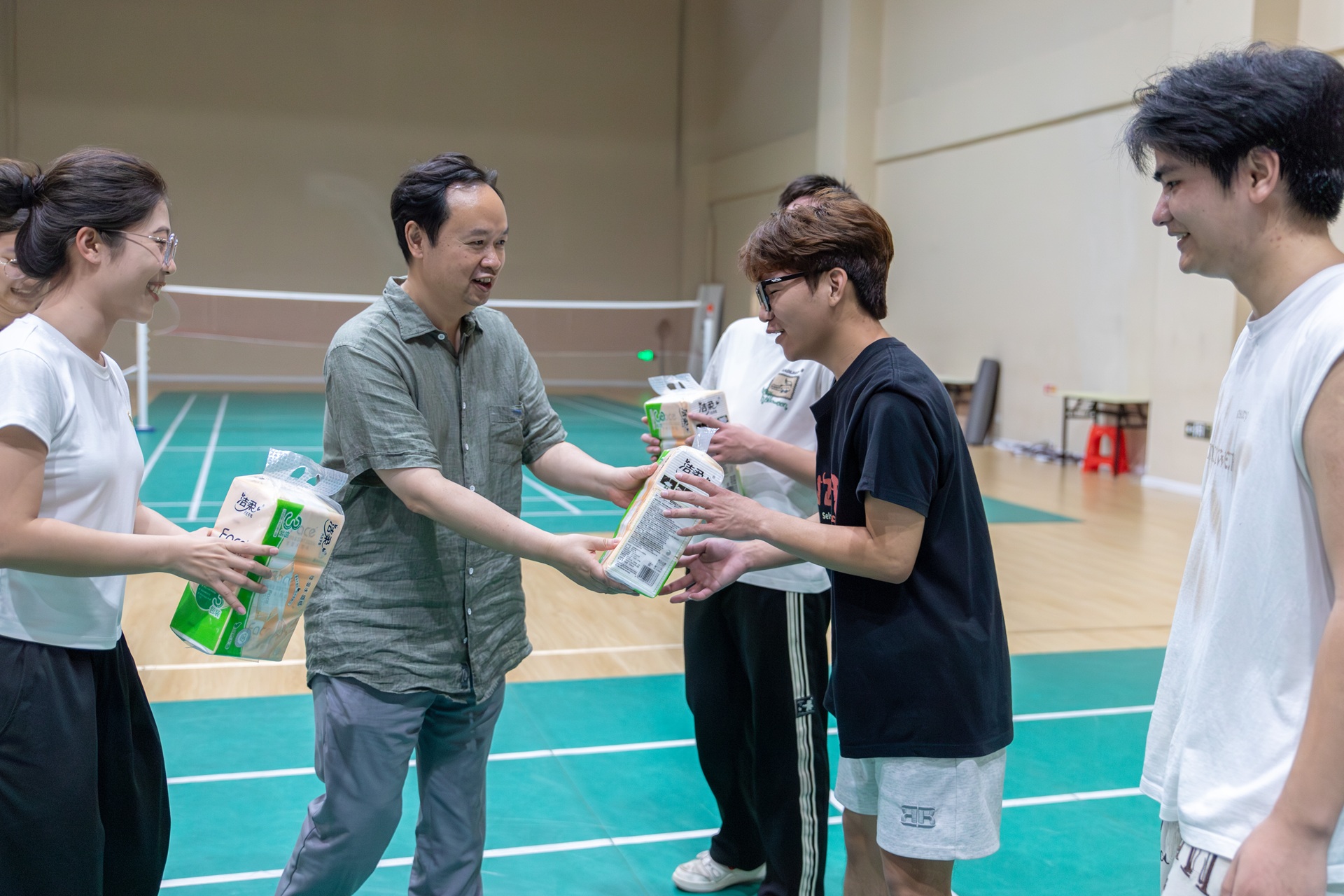 随着裁判的一声哨响,比赛正式开始。罗欣董事长作为队员加入班级战队,发球、传球动作娴熟流畅,与同学们配合默契,在球场上灵活进攻与防守。其拼搏的姿态感染着在场的每一位同学,以身作则诠释着积极向上的体育精神 。场下,观众们的加油助威声接连不断,热烈的掌声汇聚成一股青春的力量,将现场气氛推向高潮。经过多轮激烈的比拼,由罗欣董事长带领的师生联队凭借顽强的斗志和出色的球技,最终夺得了冠军。