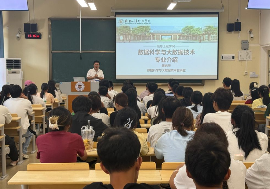 9月17日,信息工程学院数据科学与大数据技术教研室组织召开专业介绍会,面向2025级新生深入解读专业内涵与发展前景。会议由贾丽老师主持、黄忠华老师主讲,从专业背景、课程体系、就业方向及赛事活动等多方面展开介绍。