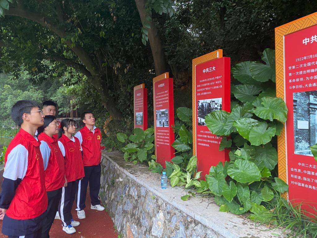 党史学习教育长廊以“志立千秋业、百年正芳华”为主题,长1.5公里,共设中共一大、井冈山会师、湘江战役等22个主题点,以实物、雕塑、壁画等多种形式展现了中国共产党百年来的波澜壮阔历程和取得的辉煌成就。从中共一大的红船到党的十九大胜利召开,中国共产党百年来的波澜壮阔历程和取得的辉煌成就历历在目。党员们集体回顾了中共一大、遵义会议、长征胜利会师等重要历史事件及其历史意义,加深了对红船精神、井冈山精神、长征精神等的认识和理解。