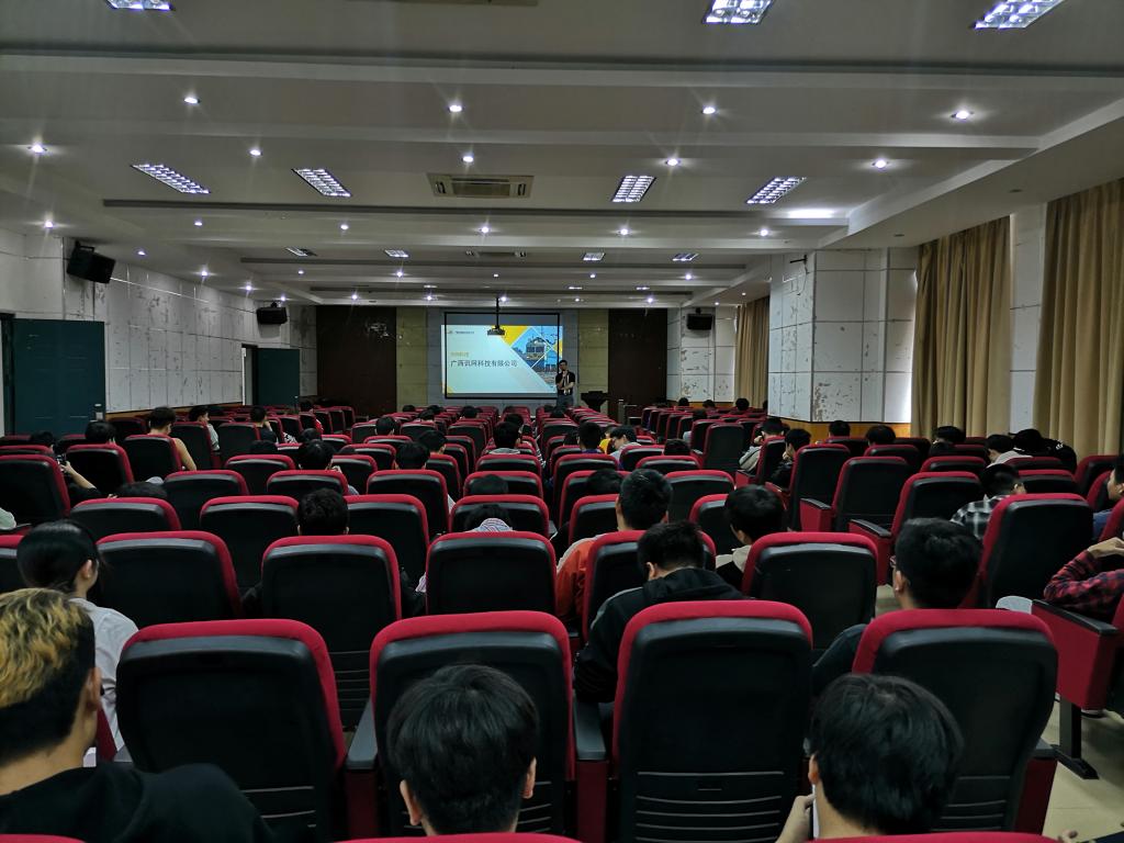 宣讲会中,李龙贤经理详细介绍了广西讯网的企业文化以及企业人才培养项目,重点解读了公司关于铁道部门IT行业的项目和技术。随后,学长学姐交流实习体会环节,我院毕业生广西讯网科技员工黎丁铭、孔令巧分享了大学生应聘技巧和职场新人生存法则,并表示非常欢迎同学们到广西讯网科技实习和就业。