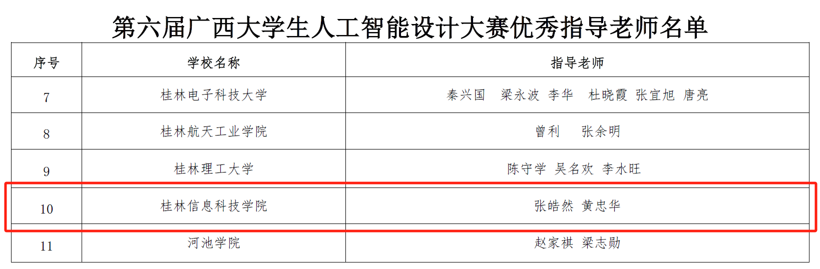 (第六届广西大学生人工智能设计大赛优秀指导老师名单)