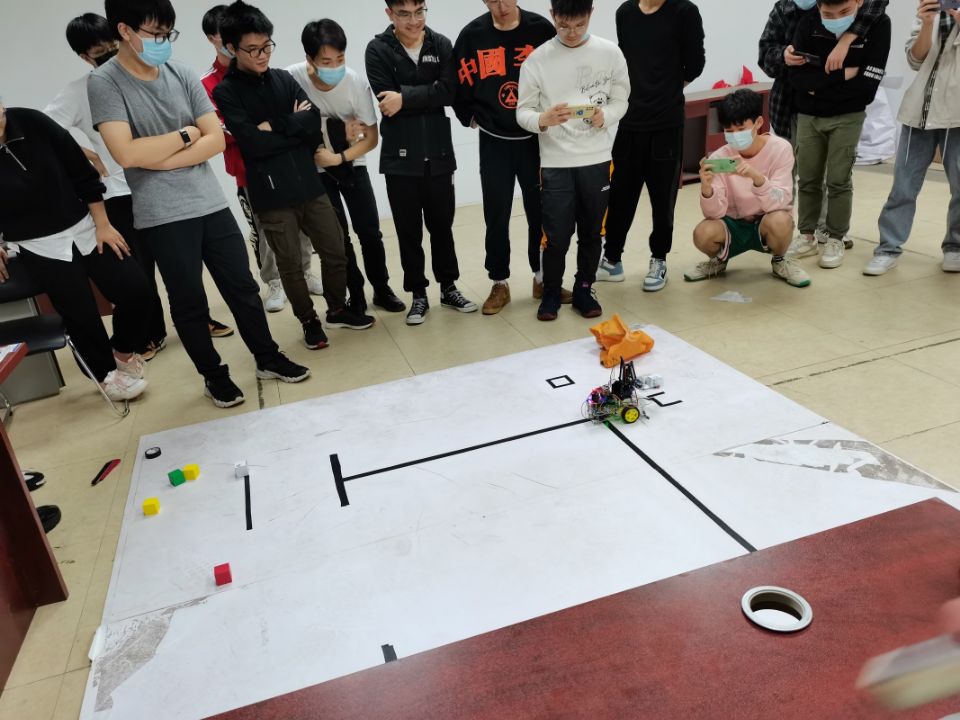 本次比赛提供四道题目,参赛选手可自由选择,选手有4周的时间进行解答和完成制作,最后由老师集体验收并完成打分。在验收过程中,参赛选手们一一展示其作品,并和老师们进行技术原理上的讨论,验收氛围紧张而有序。